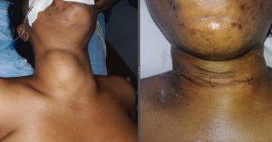 On February 5, 2023, our team of experts, including Dr Nachelleh, Dr Owusu Darkwa, Dr Ahiakpa, Mr. Tullo, Mr Dzakumah and Miss Kakri, successfully carried out our first thyroid (goitre) surgery.